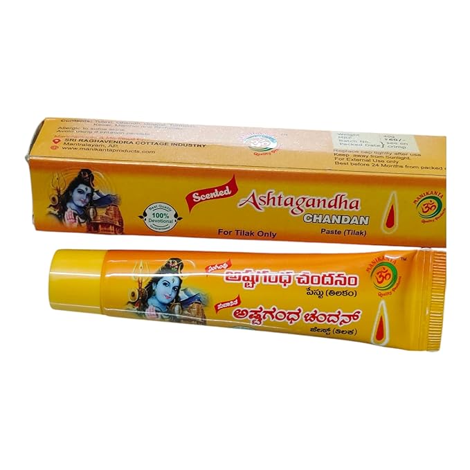 Packaged in a convenient 50g tube, it is easy to apply and store, making it ideal for both personal use and temple rituals. The aroma of Ashtagandha is cooling, soothing, and helps in meditation, concentration, and inner peace.