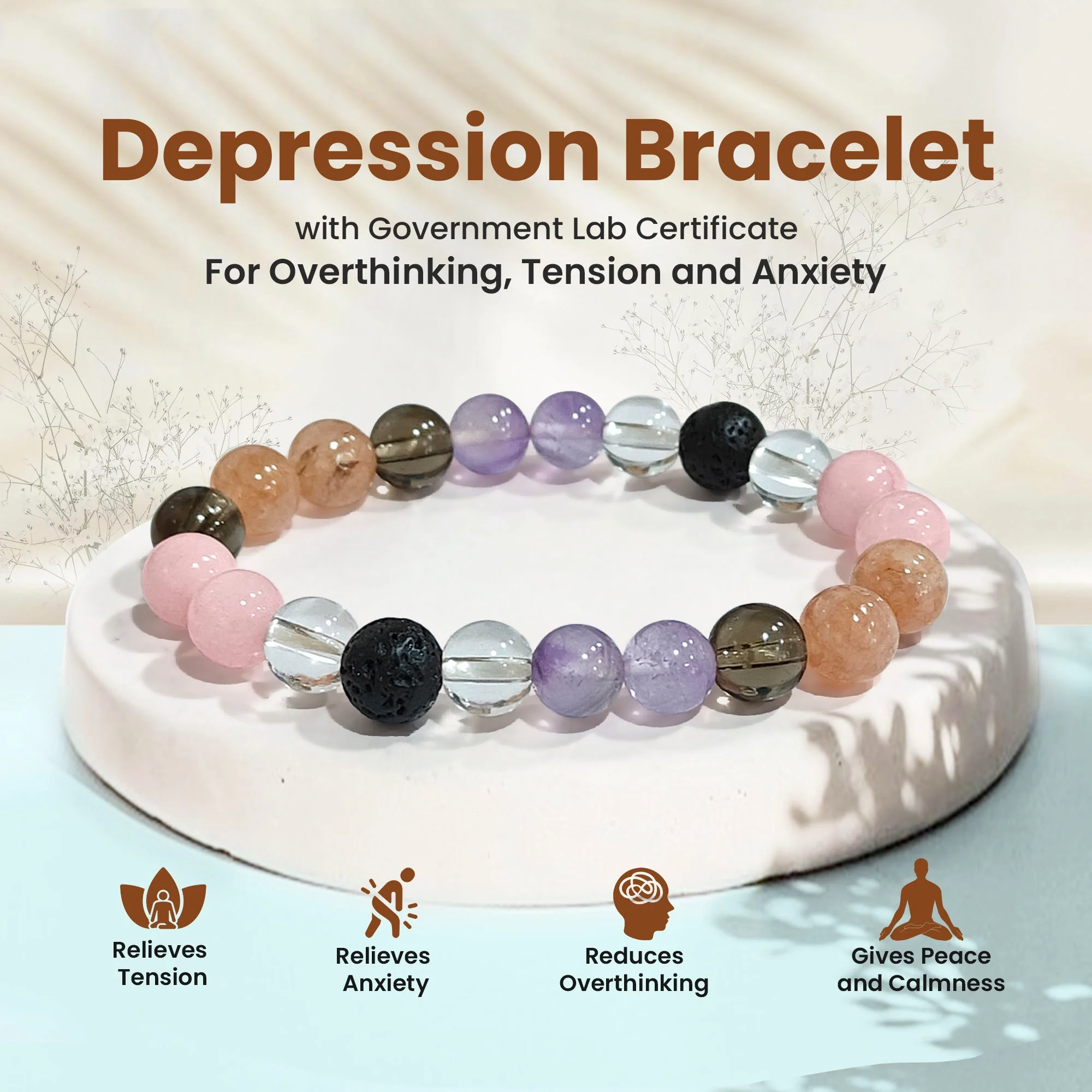 Find emotional comfort, inner calm, and supportive energy with this thoughtfully curated Depression Support Bracelet, crafted using 8mm certified natural healing crystals and accompanied by an authenticity certificate. Designed to gently support emotional well-being, this bracelet focuses on mental calmness, positivity, grounding, and emotional balance.
