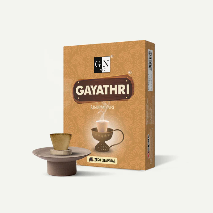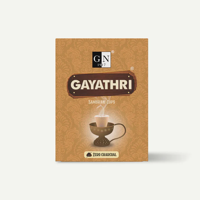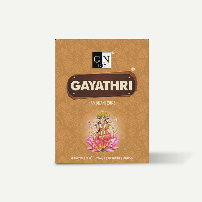 Purity and convenience in every cup. Gayathri Dhoop Cups are made from pure sambrani (benzoin resin), which purifies the air and removes negative energies. These non‑charcoal cups emit dense, aromatic smoke that creates a sacred atmosphere for meditation and prayer.