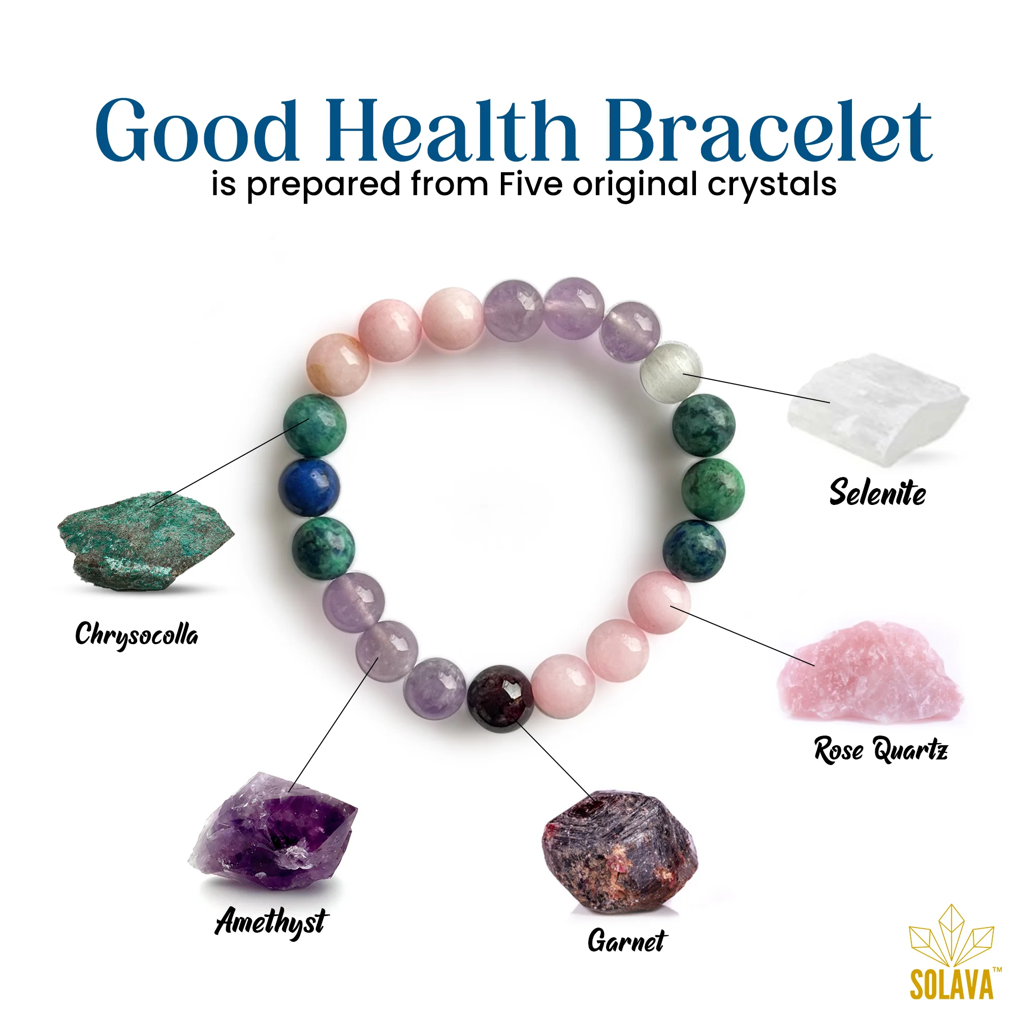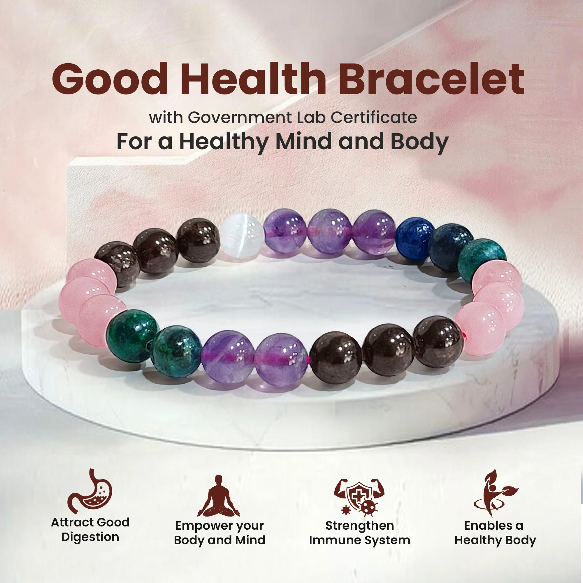 Support your overall well-being with this thoughtfully curated Good Health Bracelet, crafted using 8mm certified natural crystals and accompanied by an authenticity certificate. Designed to promote physical vitality, emotional balance, and positive energy, this bracelet is ideal for those focusing on a healthier and more balanced lifestyle.