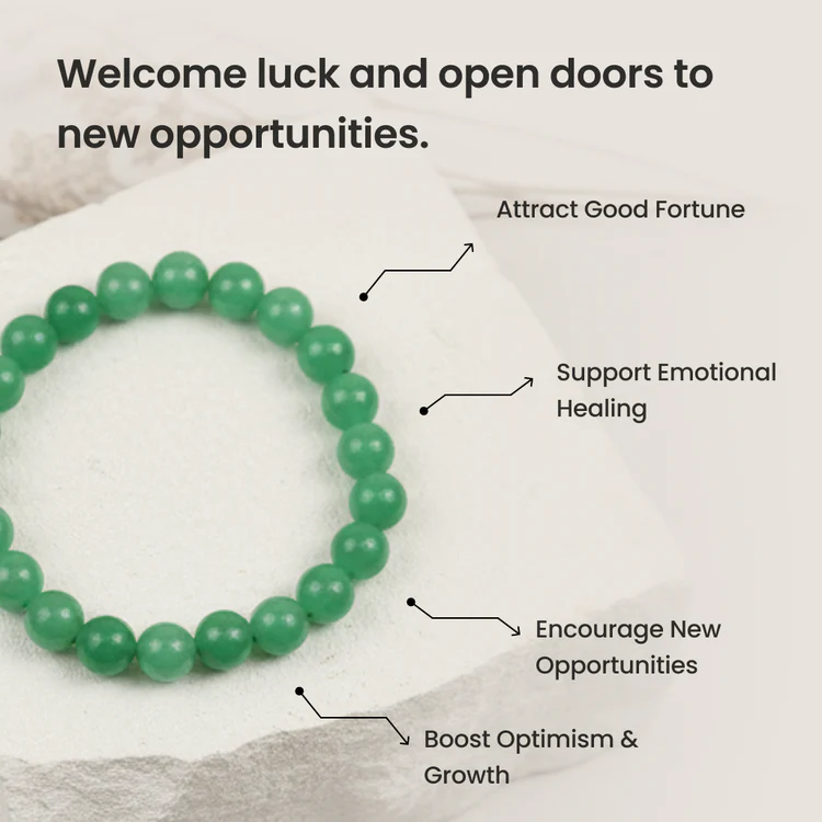 Invite abundance, success, and positive energy into your life with this elegant Green Aventurine Bracelet, crafted with premium 8mm natural crystal beads. Known as the Stone of Opportunity, Green Aventurine is widely believed to attract prosperity, good luck, and new opportunities — making it a powerful crystal for career growth, business success, and emotional balance.
