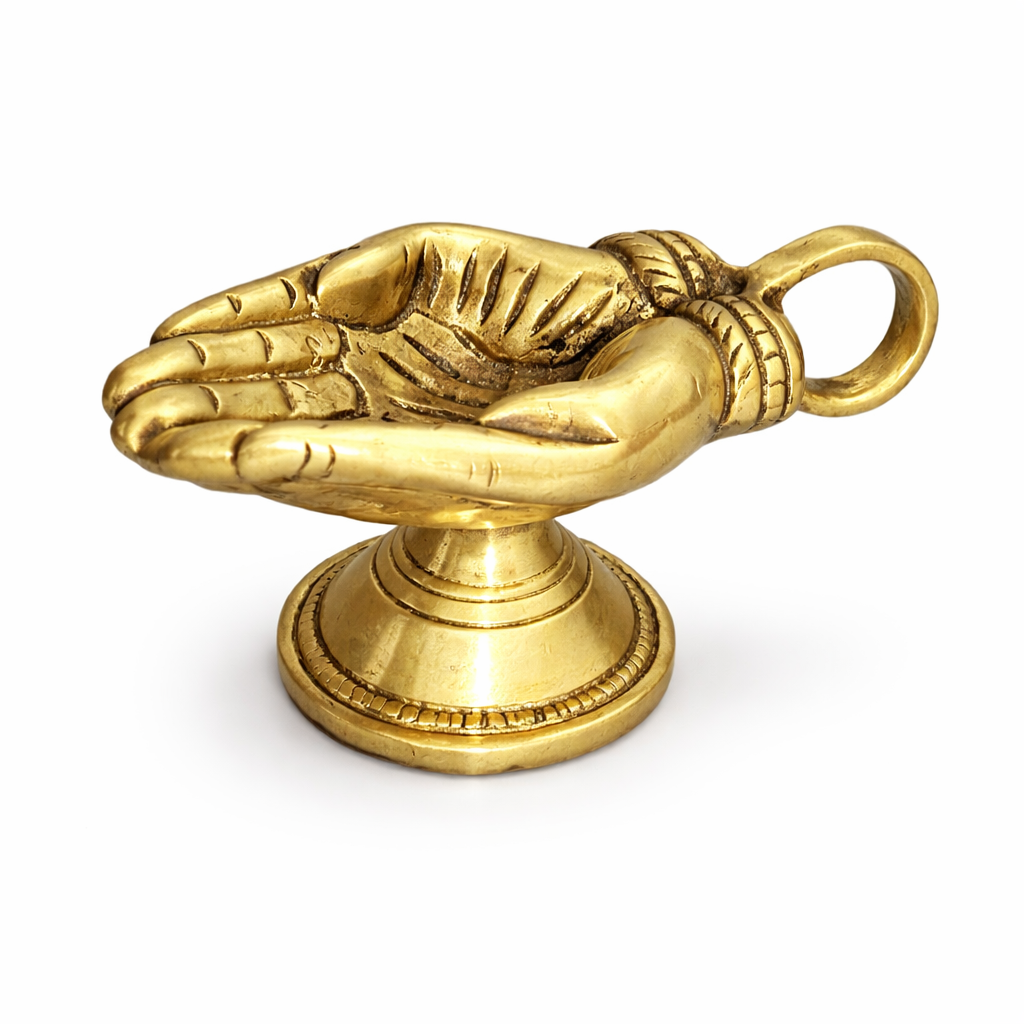 The hand diya symbolizes offering light directly to the Divine, representing devotion, surrender, and reverence. Lighting this diya during aarti is believed to: