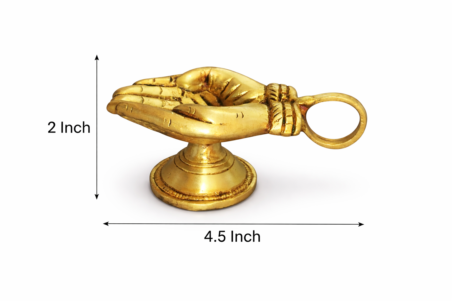 Design: Hand-shaped diya with stand and handle