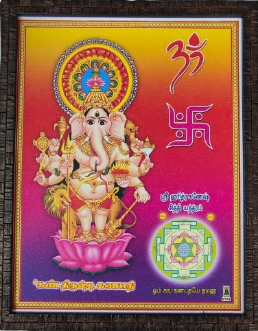 Bring home the KanThrishti Ganapathy Photo Frame – A4 Size with Glitter Matt Finish to enrich your sacred space with the divine presence of Lord Ganesha, inviting protection, prosperity, and positive energy into your life.