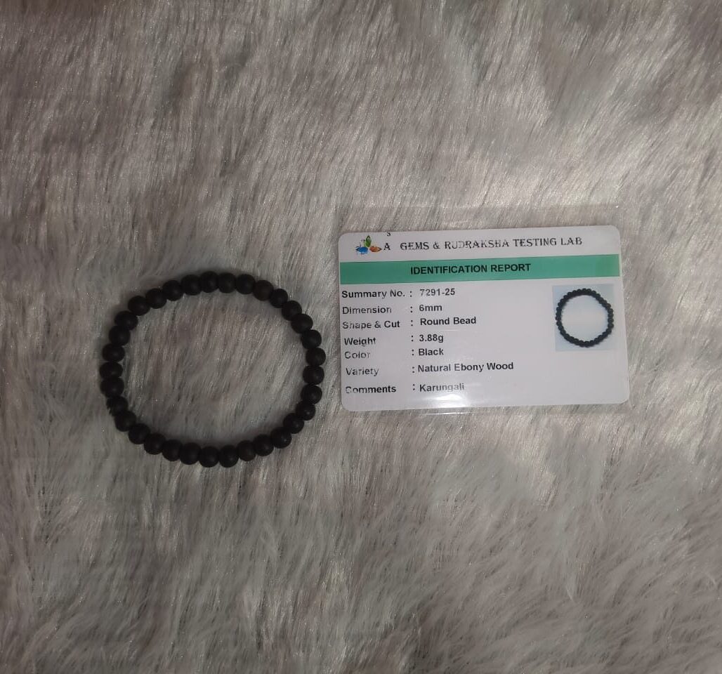 Bring home the protective grace of Karungali (Black Ebony) in a sleek, everyday bracelet—crafted with 6 mm natural wooden beads and accompanied by a Certificate of Authenticity from Vibi’s Little World.