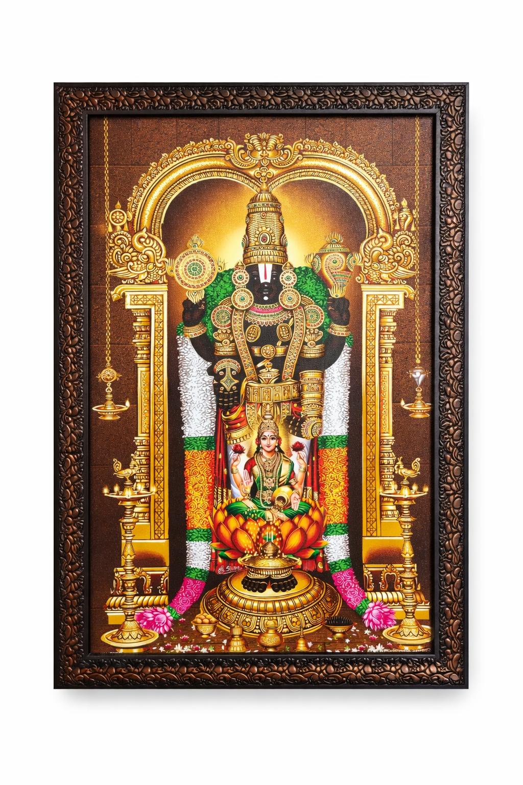 Bring the divine blessings of Lord Balaji (Venkateshwara Swamy) into your home with this beautifully designed Balaji Venkateshwara Photo Frame, featuring an elegant glitter matt finish that enhances its spiritual radiance. Sized at 12 × 18 inches, this frame is ideal for pooja rooms, living spaces, temples, and offices, adding a powerful devotional presence.