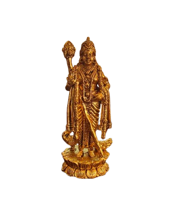 Embrace divine strength and wisdom with this intricately crafted 2-inch antique brass miniature of Lord Murugan, also known as Kartikeya or Subramanya. Depicted in a traditional South Indian style with serene features and a graceful stance, this idol radiates courage, purity, and spiritual clarity.