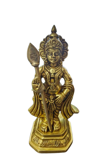 The Murugan Statue [Brass] [7.5 Inch] is a finely crafted representation of Lord Murugan, the warrior deity and the son of Lord Shiva and Goddess Parvati. Known as the God of Valor, Wisdom, and Victory, Lord Murugan is worshipped for courage, protection, and the removal of obstacles.