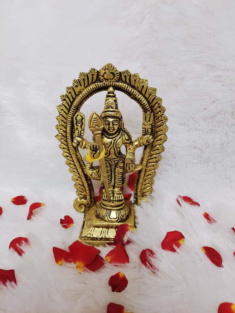 Worshipping Lord Murugan helps remove life’s obstacles and fills your home with positivity, courage, and spiritual clarity. The arch behind the deity signifies divine energy and protection, creating a sacred aura wherever placed.