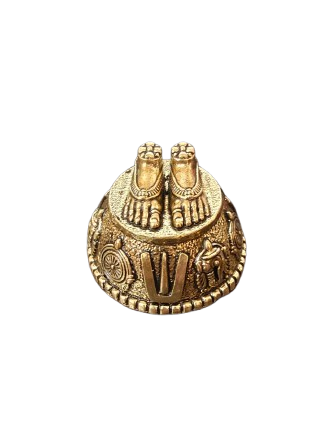 The Perumal Padham [Brass] [Antique] [1.5 Inch] is a sacred representation of Lord Vishnu’s divine feet, symbolizing protection, devotion, and spiritual guidance. Crafted in antique-finish brass, this miniature Paduka (holy feet) is a revered item in Hindu traditions, often placed in puja rooms, altars, or spiritual spaces to invite divine blessings.