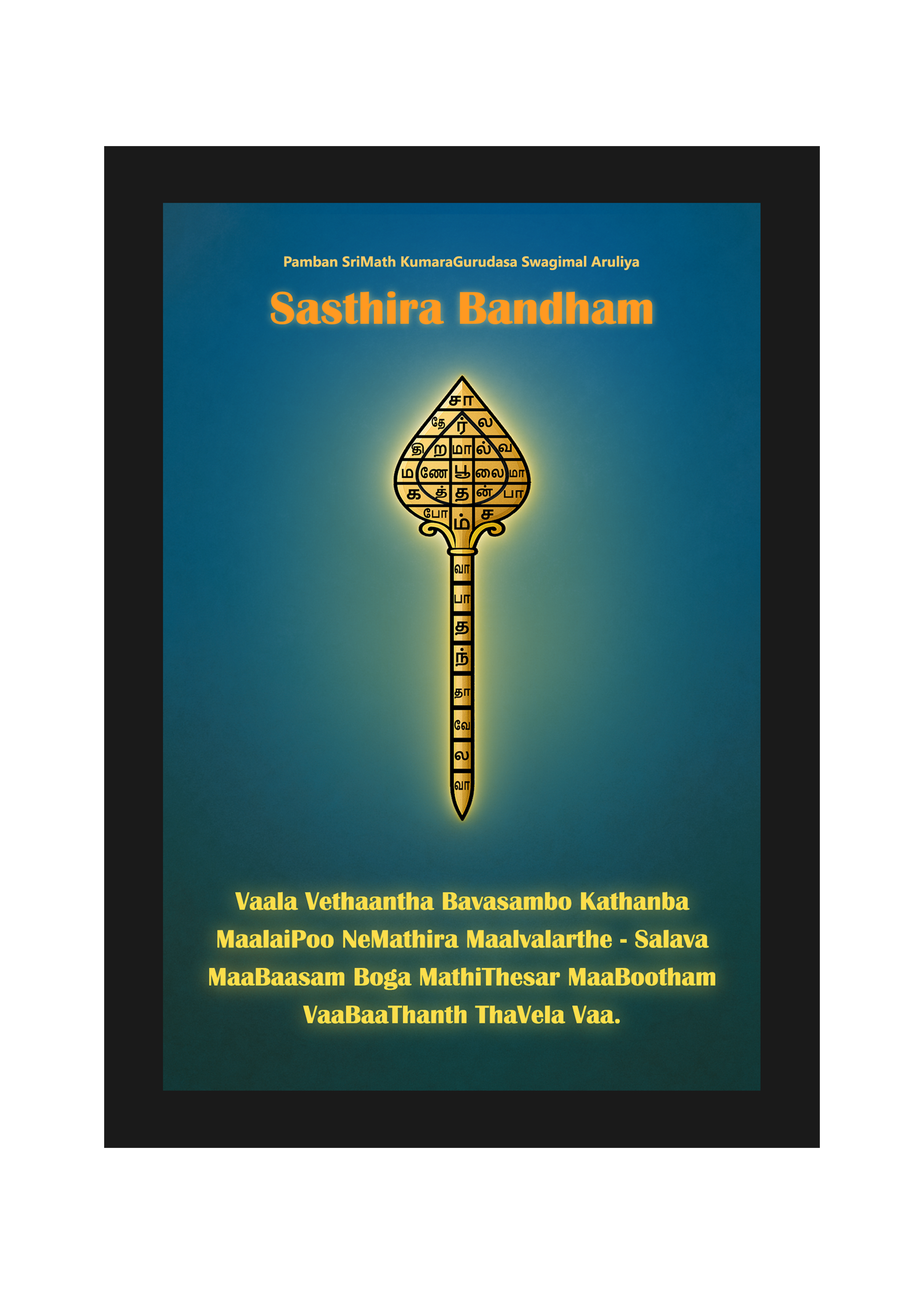 Design: Sasthira Bandham mantra and Murugan Vel depiction