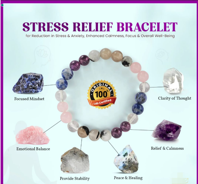 Restore calmness and inner peace with this soothing Stress Relief Bracelet, crafted using 8mm certified natural healing stones and accompanied by an authenticity certificate. Designed to help ease anxiety, mental pressure, and emotional imbalance, this bracelet is ideal for daily wear, meditation, and mindful living.